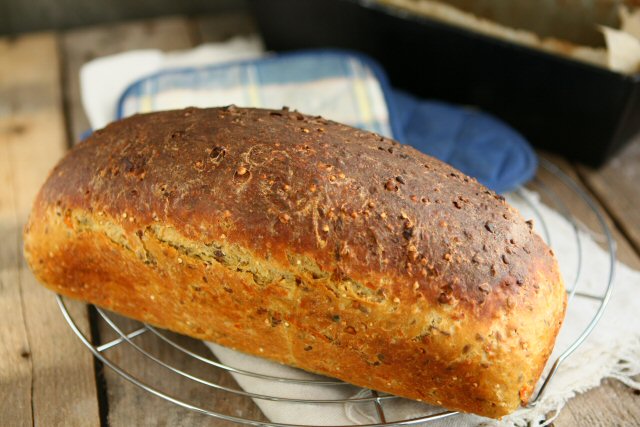 A wholesome, hearty, nutty wholewheat bread that goes wonderfully with a cold meat platter, fruit or cheese plate. Perfect toasted for a nutritious and healthy breakfast too.
