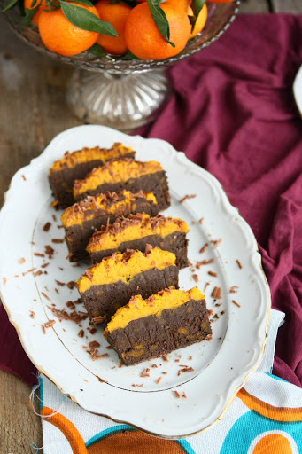 2. Place chocolates, coconut oil and honey in a large bowl set over a pot of simmering water. Stir until chocolate is melted and mixture is smooth. Add in pumpkin puree, egg and vanilla extract. Mix until incorporated.