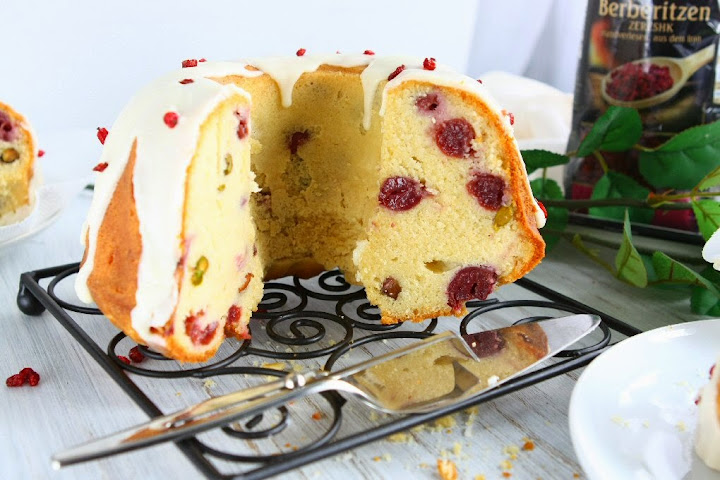 - Combine all ingredients for the glaze in a small bowl and whisk until smooth. Drizzle over cooled cake. Sprinkle with some dried barberries.