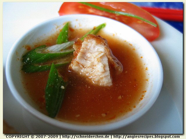 - Clean the fish and drain. Mix in the marinade and let stand for about 15 minutes. Rinse peppers in cold water and then remove stem and seeds. Cut into small chunks. Combine all the sauce ingredients in a small bowl.