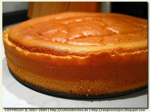 3. Pour into a 26-cm ungreased tube pan and spread evenly. Bake for about 75 minutes until done in the center of 155C/310F oven. Remove pan from oven and immediately turn upside down on the neck of a glass bottle to cool for at least 1 hour. Unmold after it's thoroughly cool.