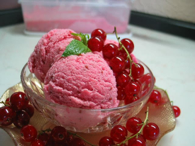 Red currants may be used fresh in tarts, pies, jams, preserves, and used as an alternative to traditional cranberry sauce. Redcurrants contain vitamin C, iron, potassium and fiber. They are good for the immune system and the antiseptic properties of redcurrant jelly make it an effective treatment of minor burns - after cooling the affected area with cold water. I am sending this to What's Cooking--Homemade Ice Cream